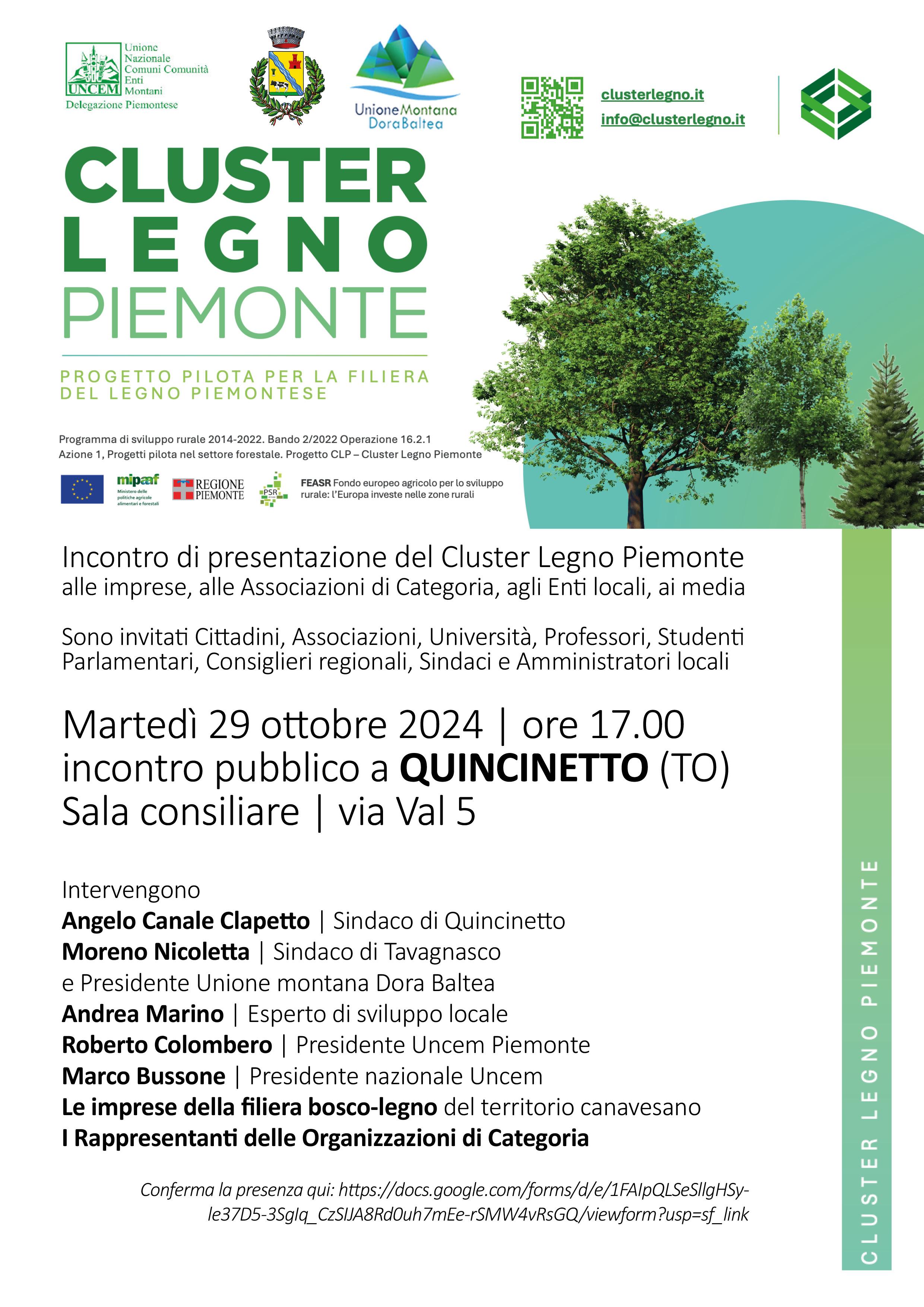 Progetto pilota per la filiera del legno Piemontese martedì 29 ottobre 2024 ore 17,00 c/o la Sala consiliare di Quincinetto