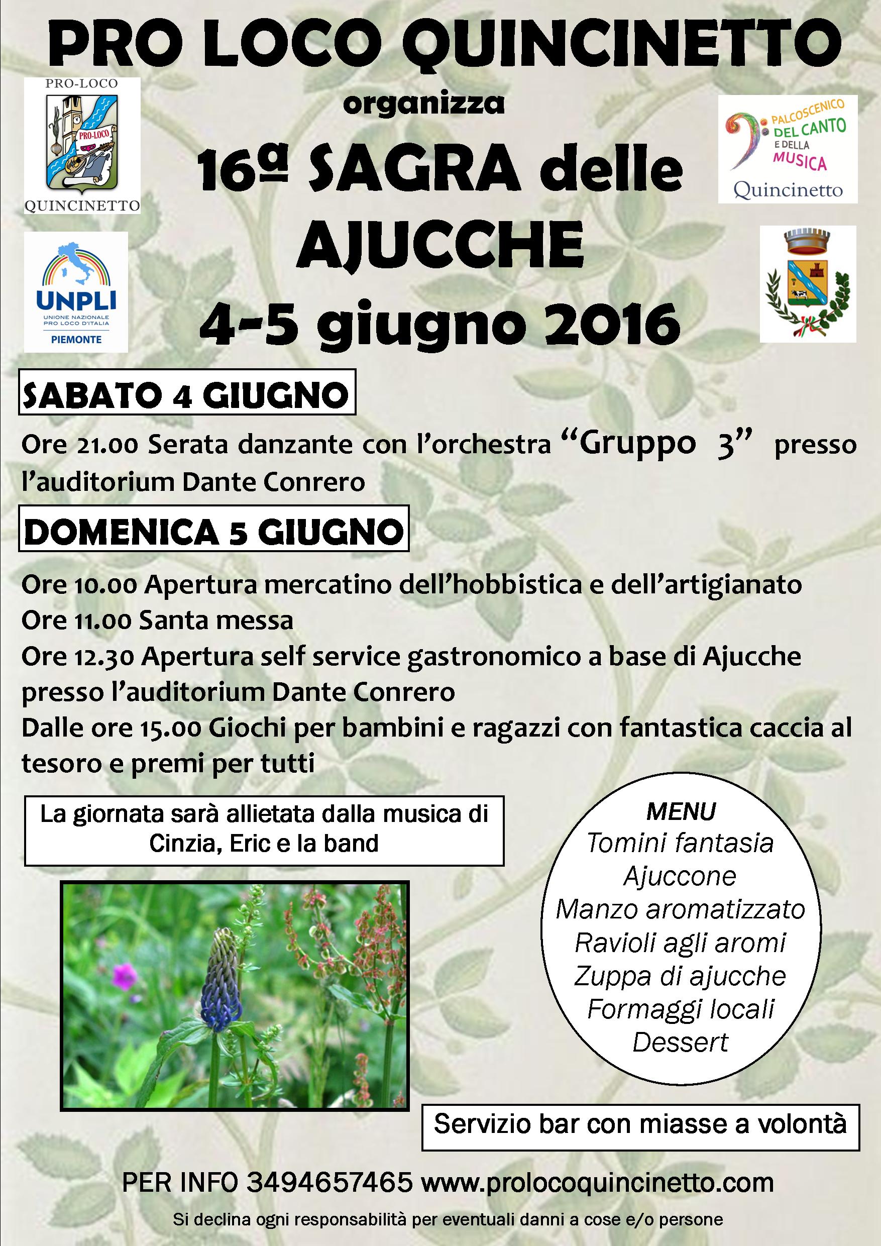 La PRO LOCO di QUINCINETTO organizza la 16° Sagra delle Ajucche il 4-5 giugno 2016.