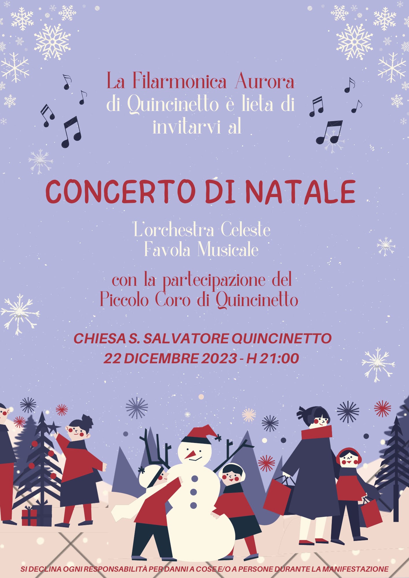 Concerto di Natale della Filarmonica "Aurora" con la partecipazione del Piccolo Coro di Quincinetto c/o la Chiesa S.S. Salvatore il 22 dicembre 2023 h. 21,00.