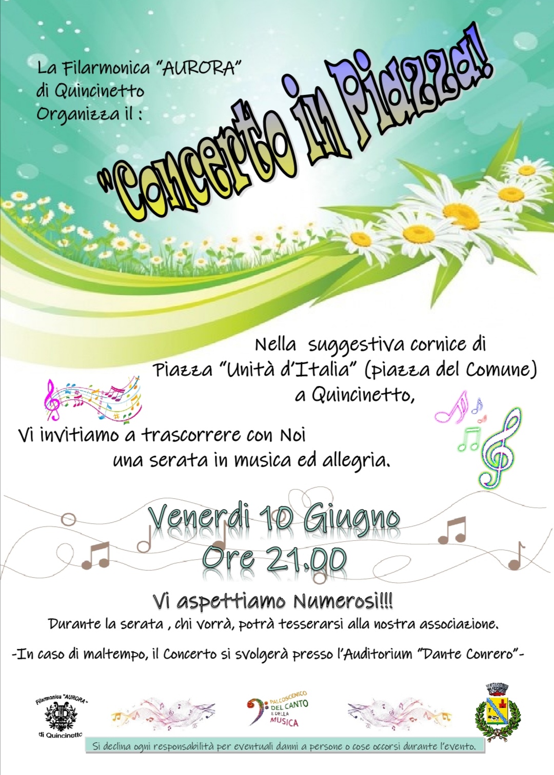 Venerdì 10 giugno serata in musica con la Filarmonica "Aurora"