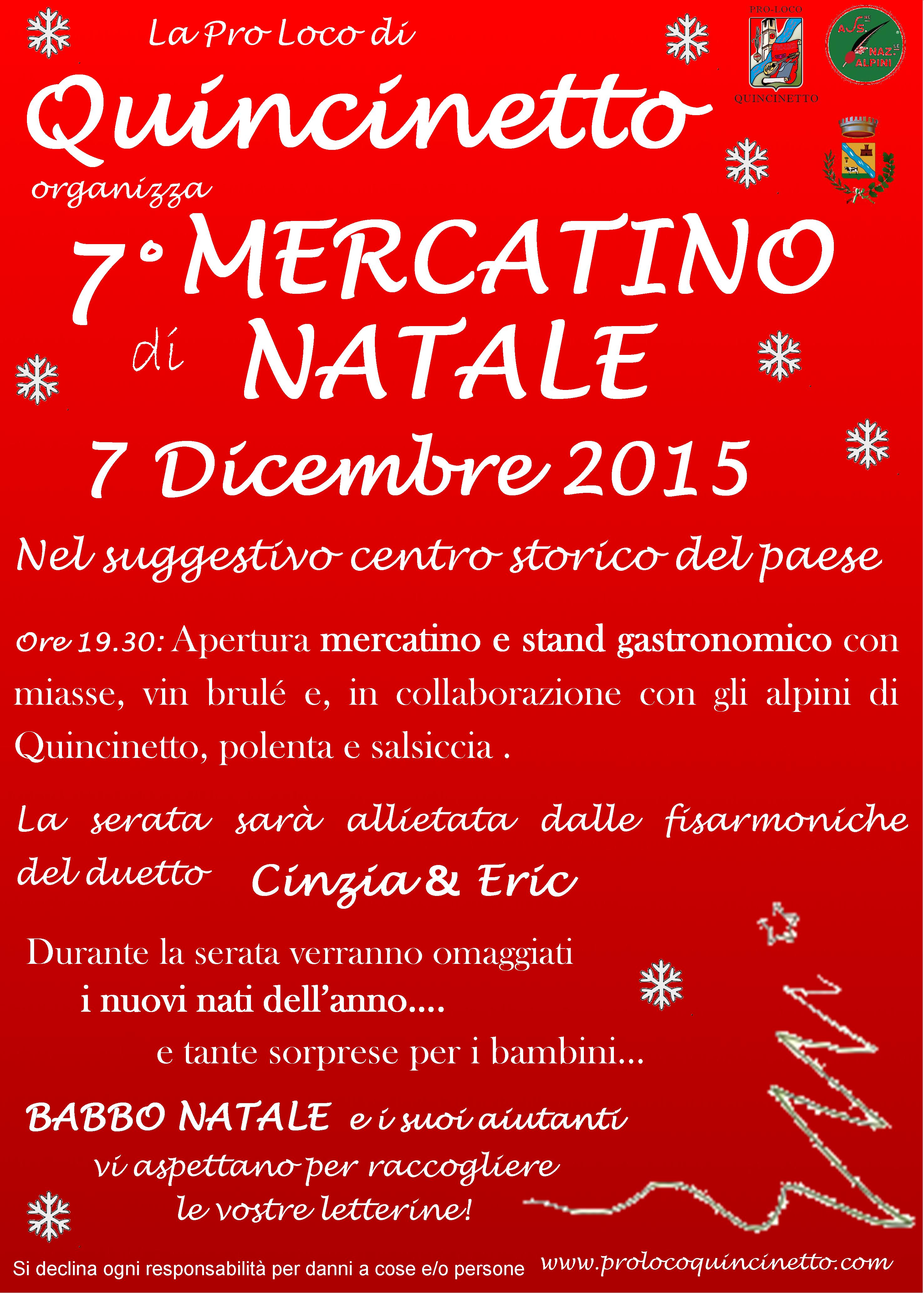 La Pro Loco in collaborazione con gli Alpini organizza il 7 Dicembre 2015 nel centro storico il 7° Mercatino di Natale.